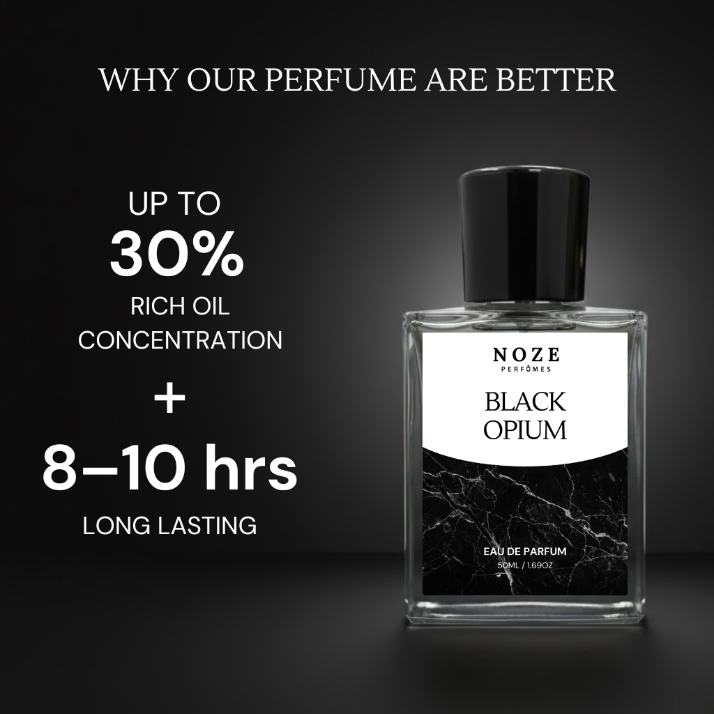 Discover Noze Perfumes’ Black Opium Luxury Recreated Perfume — an addictive, long-lasting scent with 30% perfume oil and 95% scent accuracy. Pear, jasmine, black coffee & warm vanilla create bold feminine luxury at an affordable price. Shop premium recreation today!