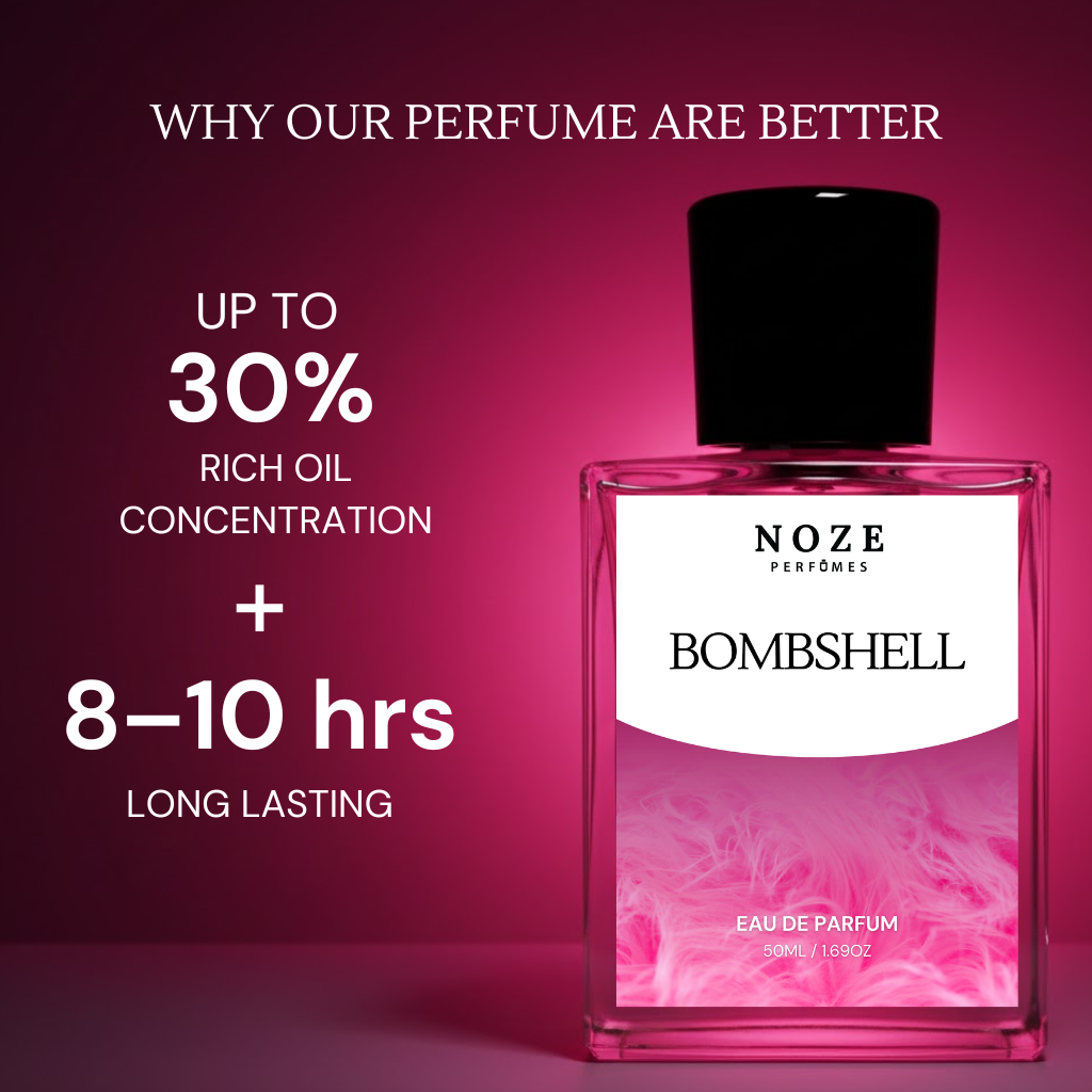 Discover Noze Perfumes’ Bombshell Recreated Luxury Perfume – a bright, long-lasting scent with 30% perfume oil and 95% scent accuracy. Passionfruit, peony, vanilla orchid, musk & warm woods create a vibrant feminine fragrance at an affordable price. Shop premium recreation today!