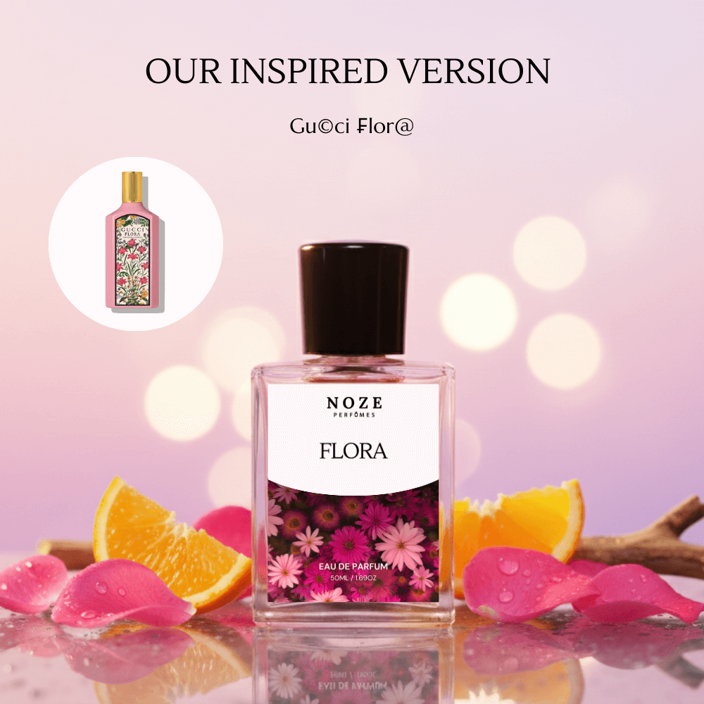 Discover Noze Perfumes’ Flora Luxury Recreated Perfum – a bright, long-lasting scent with 30% perfume oil and 95% scent accuracy. Citrus, peony, rose, osmanthus, sandalwood & patchouli create a fresh romantic fragrance at an affordable price. Shop premium recreation today!